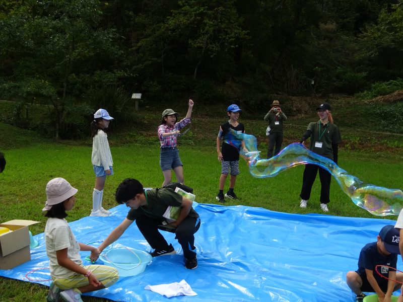 秋空の下、子どもたちは学生リーダーやグループの仲間と協力して元気いっぱい遊び、楽しい時間を過ごすことができました。