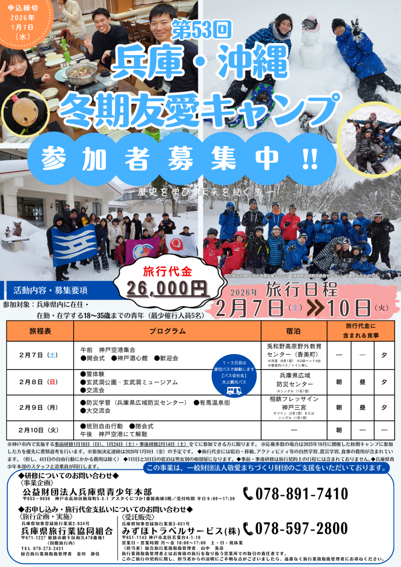 【申込み】第53回兵庫・沖縄冬期友愛キャンプ