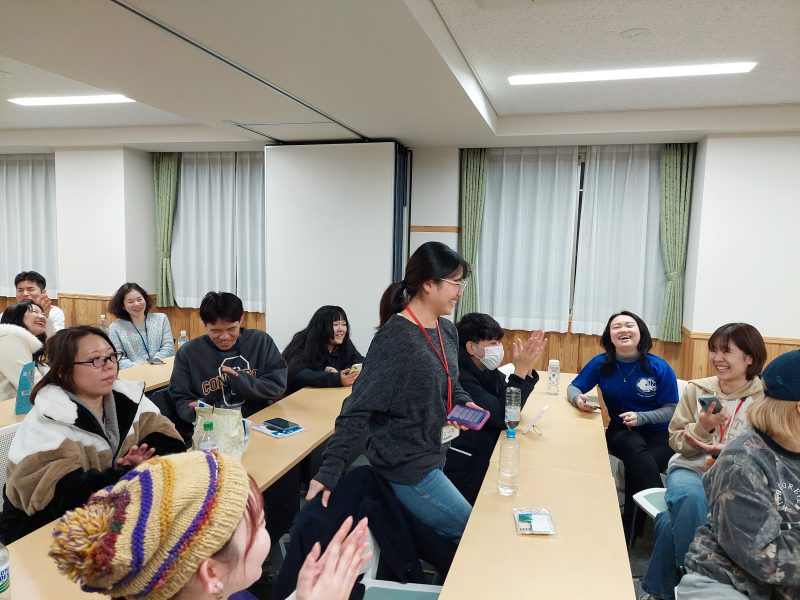 夕食後は兵庫メンバーが企画した歓迎会で班対抗「関西弁早口言葉ゲーム」をしました。