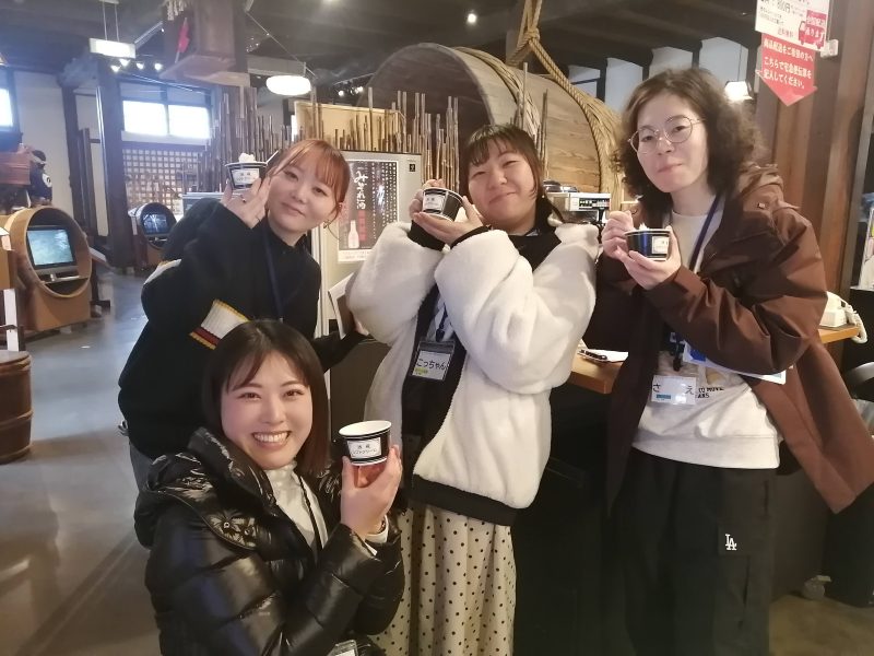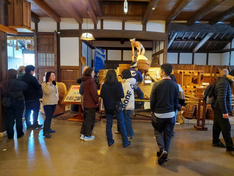 蔵人など等身大の人形を使って約500点の酒づくり道具が工程ごとにわかりやすく展示されているほか、撮影スポットも数多く用意されており、楽しく学べた様子でした。