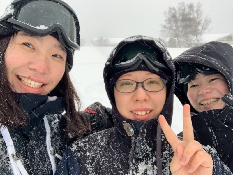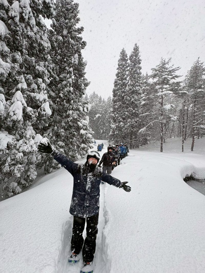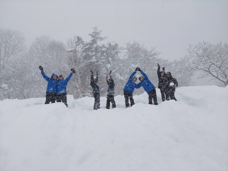 沖縄メンバーには雪を見たことのない人もいるようで、初めての雪にワクワク。