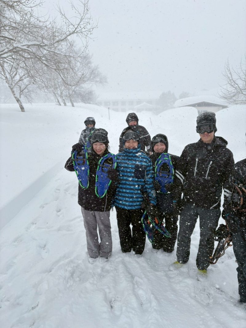 兎和野高原野外教育センターのスタッフによるレクを受けた後、スノーシューを装着して出発!