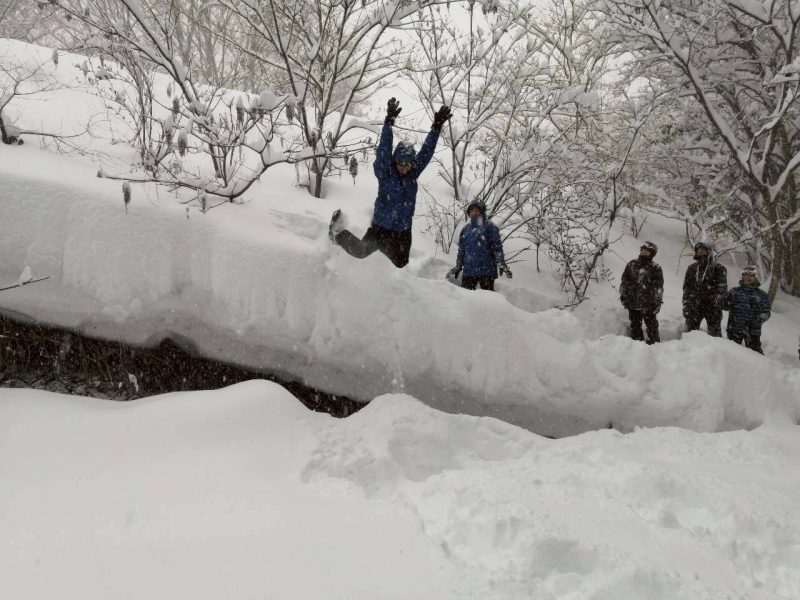 十分すぎる積雪量なので、高いところから飛び降りたり、雪に埋まってみたり、大きな雪だるま作りにチャレンジしたりして過ごしました。