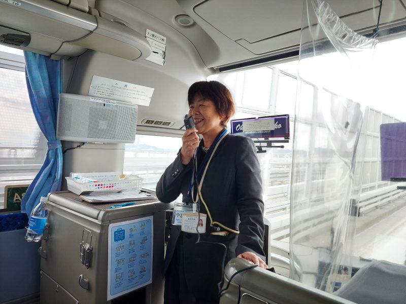 開会式後はバスに乗って、添乗員さんの案内で白鶴酒造資料館へ向かいます。