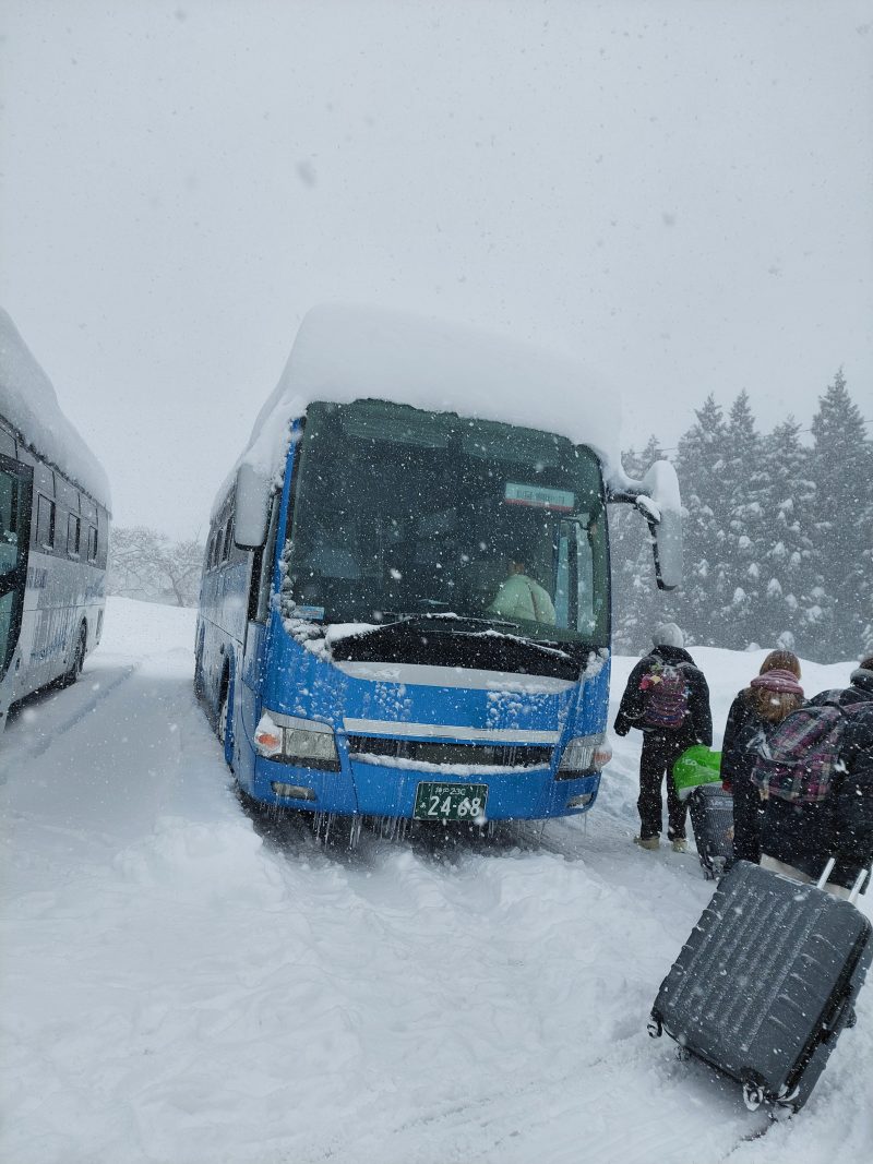 兎和野高原野外教育センターを出発するころには、大雪警報が発出され高速道路は軒並み封鎖されていました。