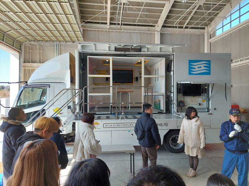 その後、センター職員によるオリエンテーションを経て、起震車での地震体験や煙避難体験をしました。