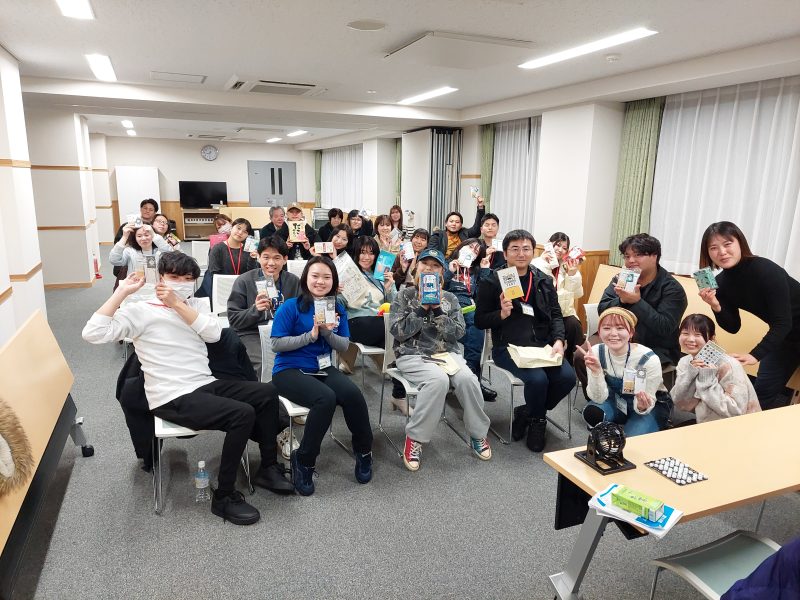 夜は前日に引き続き兵庫メンバーが企画した交流会で、「ビンゴゲーム」「椅子取りゲーム」「続・関西弁早口言葉ゲーム」をやりました。