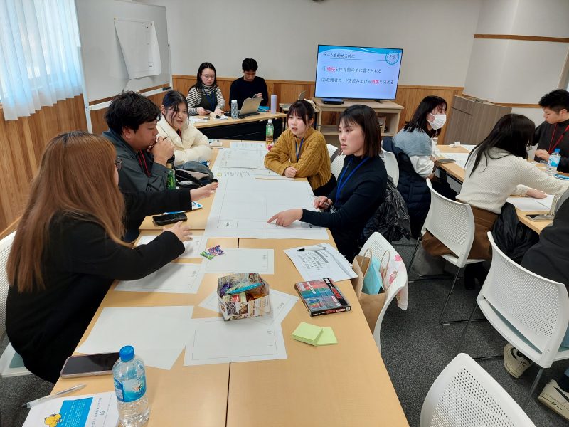 午後からは引き続き兵庫メンバー2名がプレゼンターで避難所運営ゲーム(HUG)を実施し、各班で避難者カードの配置を考え、発表しました。
