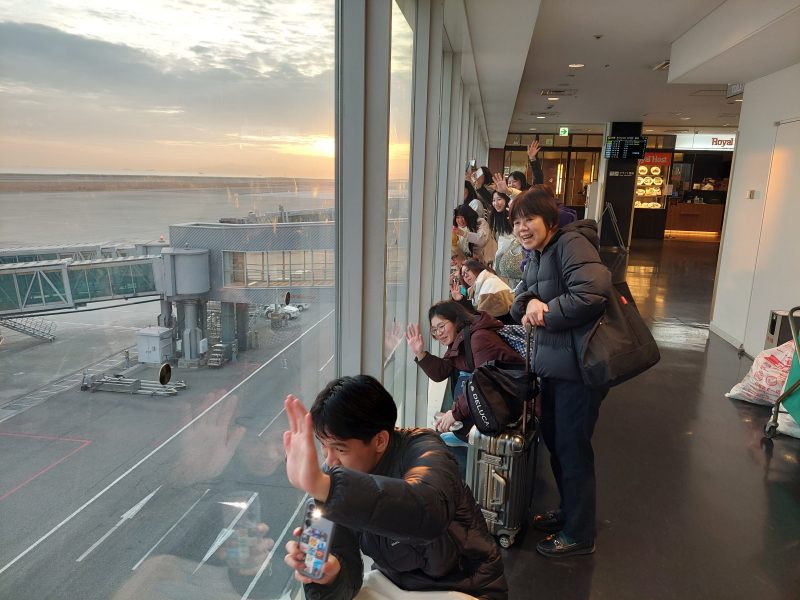 沖縄メンバーが搭乗ゲートに移動した後、兵庫メンバーは飛行機から見える場所に移動して、最後まで手を振りました。