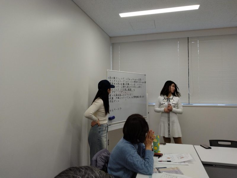 出迎えのメッセージボードを作成したり、関西弁早口言葉ゲームの詳細を決めました。