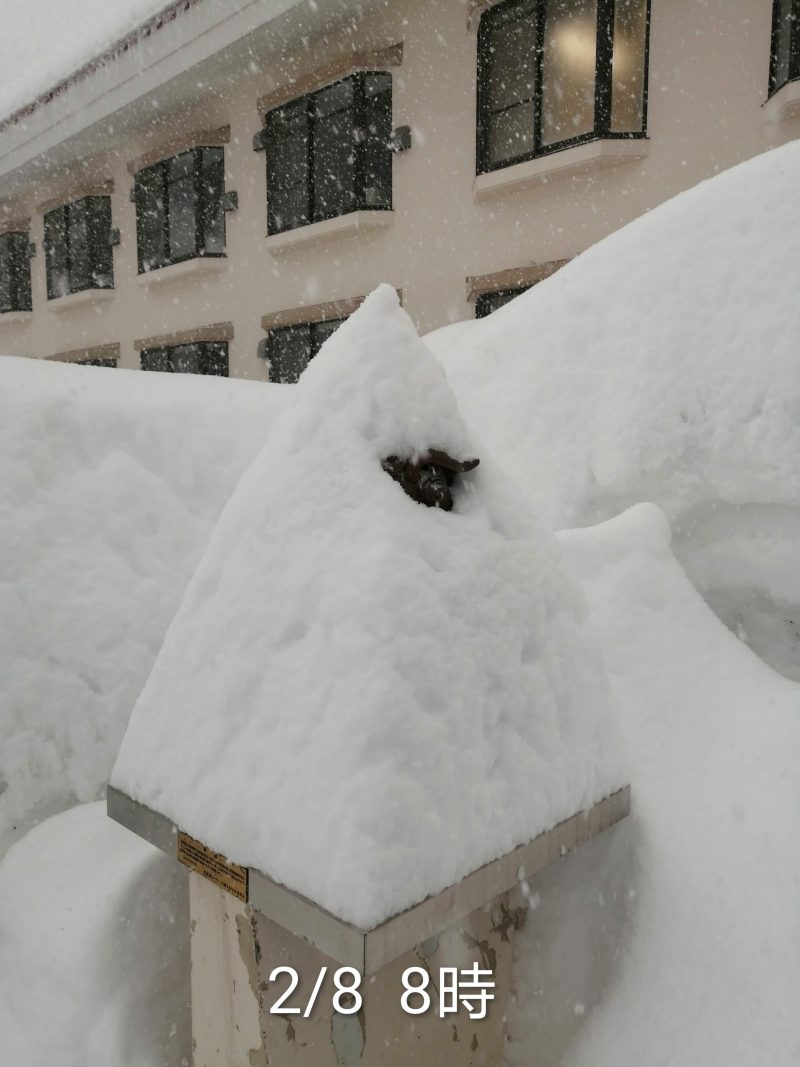 雪は150cm以上も積もっているようで、センター玄関に出してくれているシーサーはすっかり雪に埋もれてしまってます。