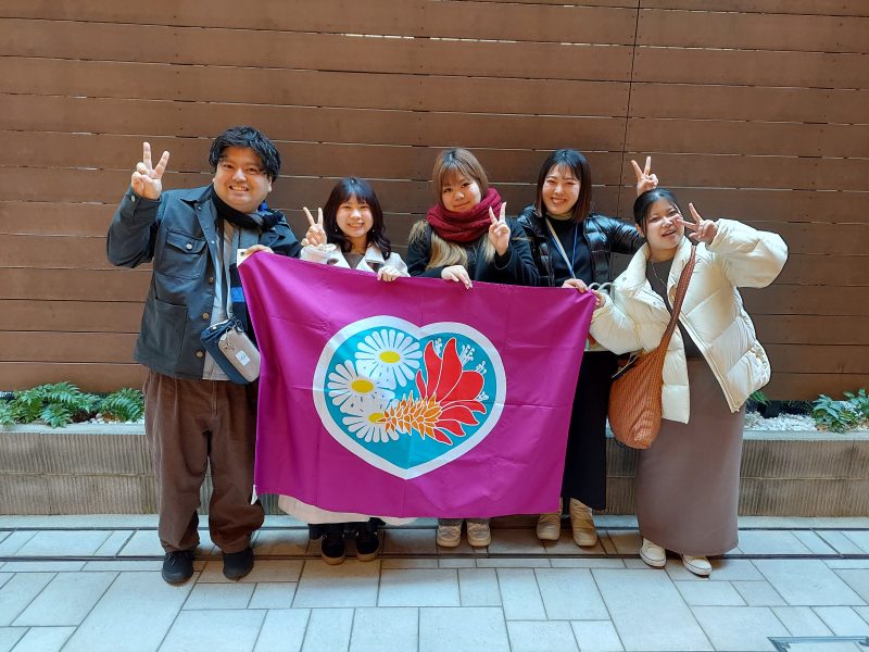 フィナーレの記念品交換では、兵庫からは夙川さくら作業所さんオリジナルのHYOGOデザイン巾着、沖縄からは首里城限定のエコバックとハンドタオルセットを贈りました。
