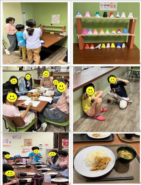 三田市役所のさんさん食堂で開催された子ども食堂に行ってきました。広い食堂内で、団体メンバーと射的・折り紙・お絵描を楽しむ子、友達と走り回って遊ぶ子、それぞれが自分のペースで楽しく過ごしている様子でした。